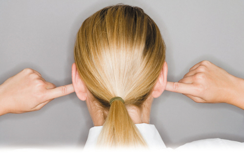 上拉耳廓。用右手绕过头部拉住左耳廓上沿向上拉20次,再用左手以同样的方法拉右耳廓20次。