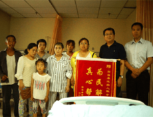带着感激,龙芬老人家人为医院和残联领导送上锦旗