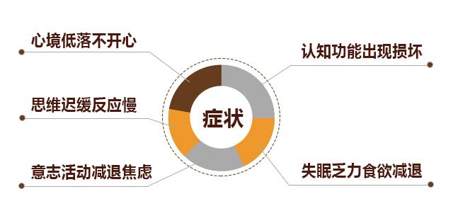 中期突出表现在情绪变坏,神经系统异常;患者通常无精打采,心情沉重,高兴不起来,注意力涣散,记忆力下降,思维迟钝,行动迟缓,工作不在状态,自我评价低,以批判、消极和否定的态度看待自己的现在、过去和将来,感觉前途一片黑暗。