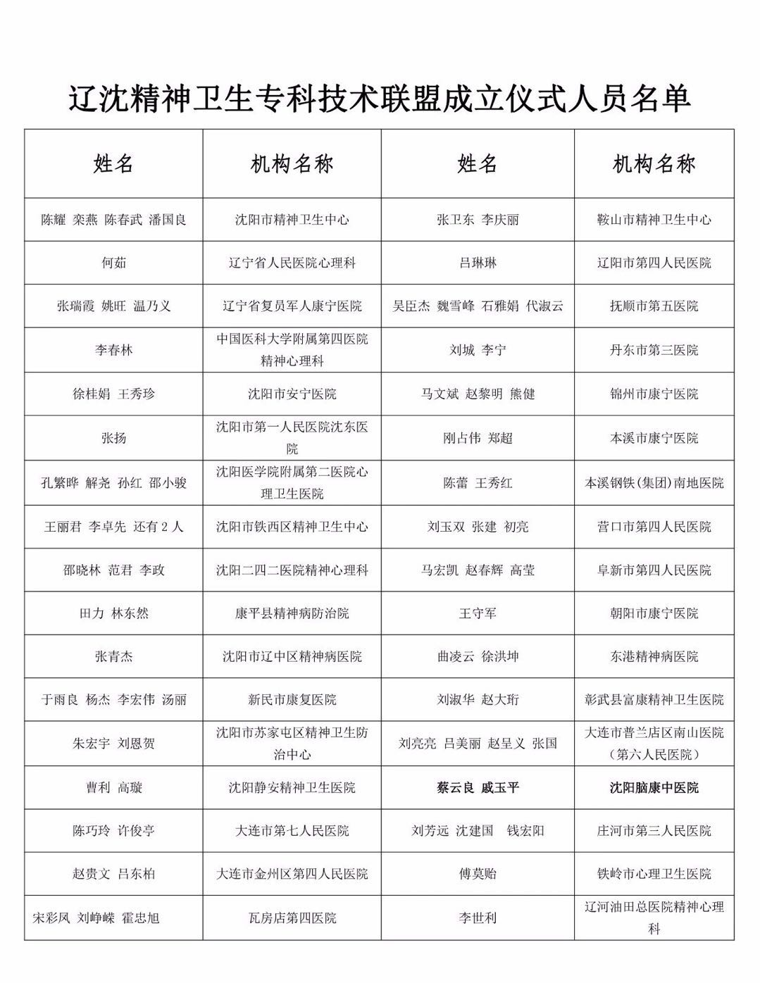 专科联盟是根据区域内医疗机构优势专科资源。由沈阳市精神卫生中心组建,2018年10月26日将在沈阳成立,届时我院蔡云良院长和戚玉平主任都将受邀参加成立仪式大会。同时参加大会的还有省内34家医疗机构加盟。(联盟名单请看附件)